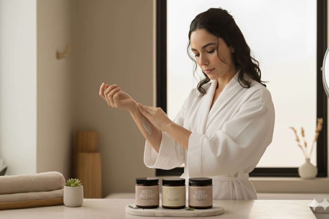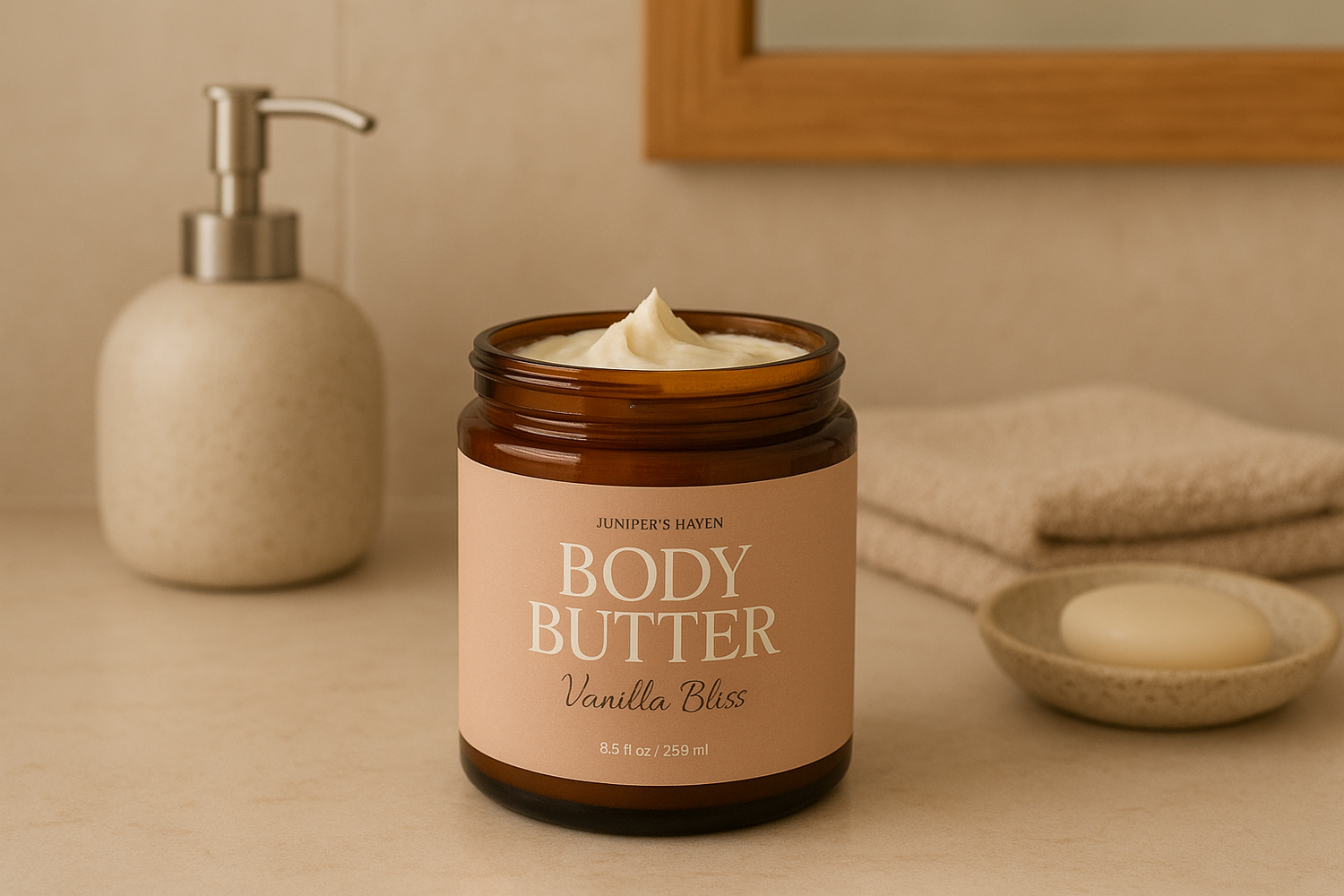 At Juniper’s Haven, we handcraft rich, fast-absorbing body butters infused with calming aromatherapy to hydrate your skin and soothe your senses. No greasy residue. No synthetic junk. Just nourishing botanicals and a daily dose of calm—right from your jar. Our body butters do more than moisturize — they soothe your skin and your mind.